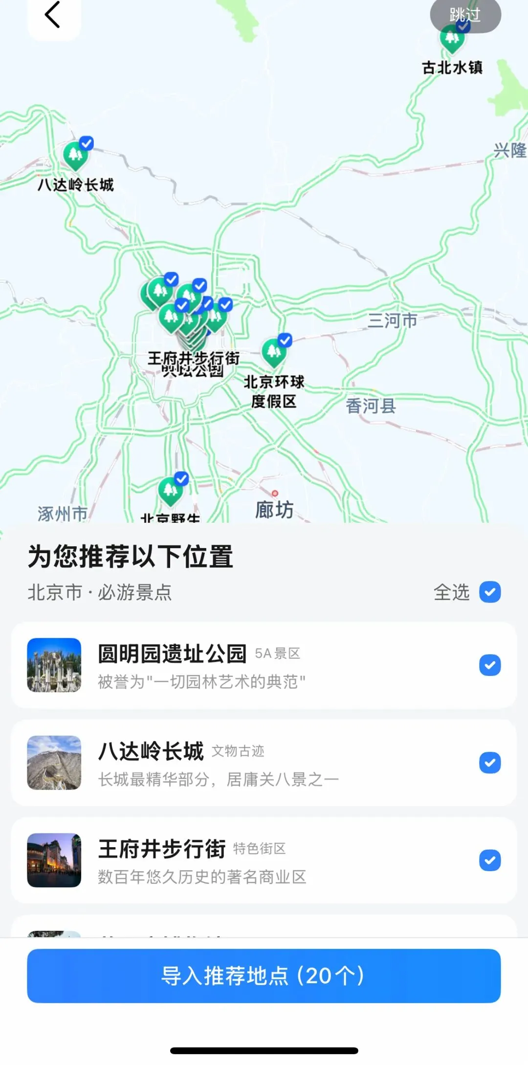 勾选你要去的景点 ,点导入推荐地点,点顺路规划