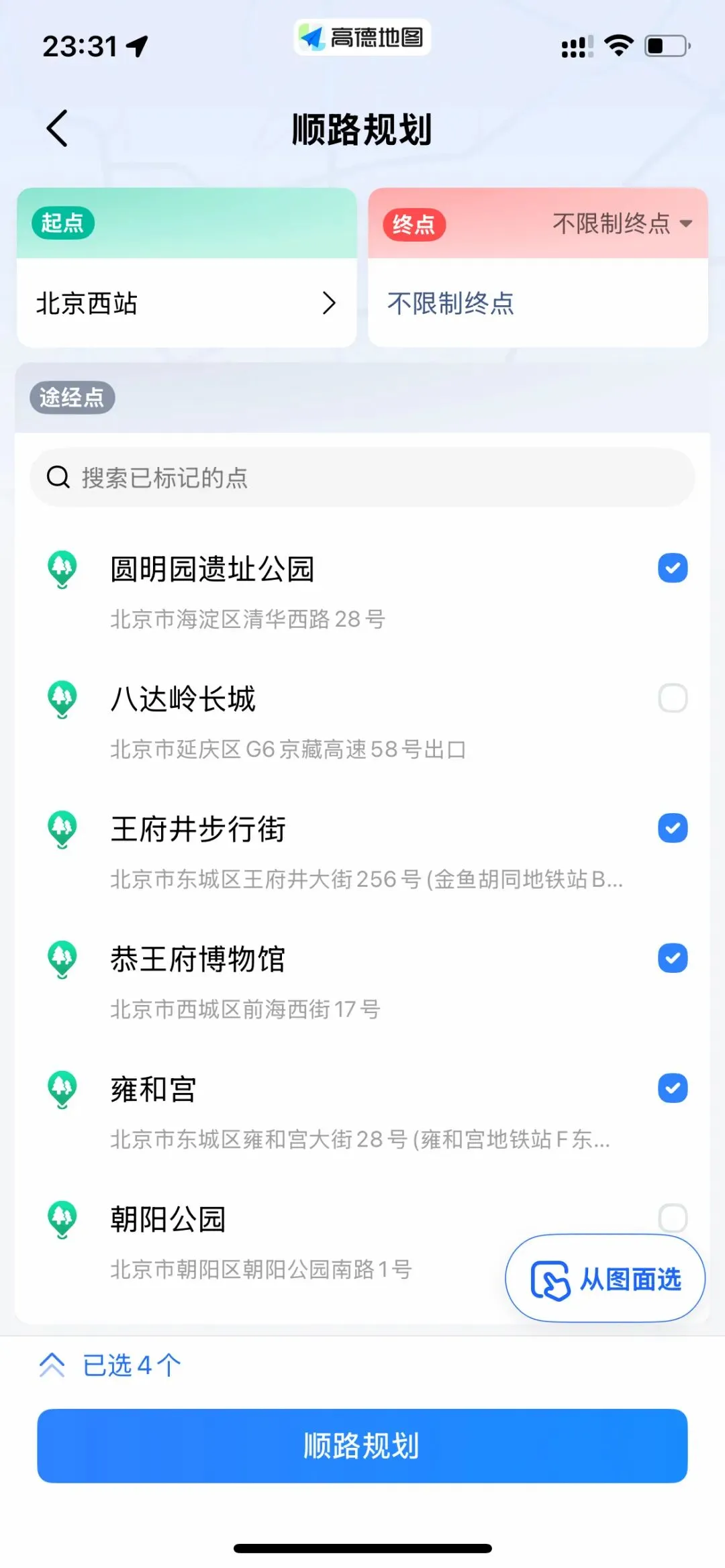 一定要设置好起点,这个旅游攻略最好是已经在这个城市里你做的攻略,选好景点