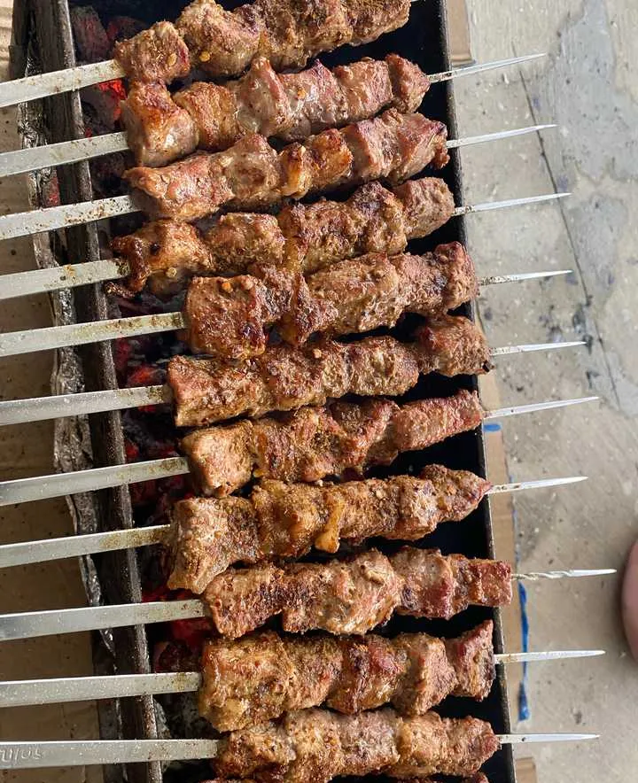 中午和晚上,烤肉、抓饭、大盘鸡这些必须吃,但不要在景区门口那些店吃,往巷子里走,看哪家店门口摆着碳火烤炉、人多的就进去,喀什的烤肉不是那种细签子,是大块羊肉串,肥瘦搭配刚好,撒上孜然和辣椒面,一口下去全是香味,抓饭也是,米粒油亮,羊肉、胡萝卜、洋葱拌在一起,用手抓着吃才有味道,别觉得不卫生,人家都是洗过手的,这种吃法才是当地传统。