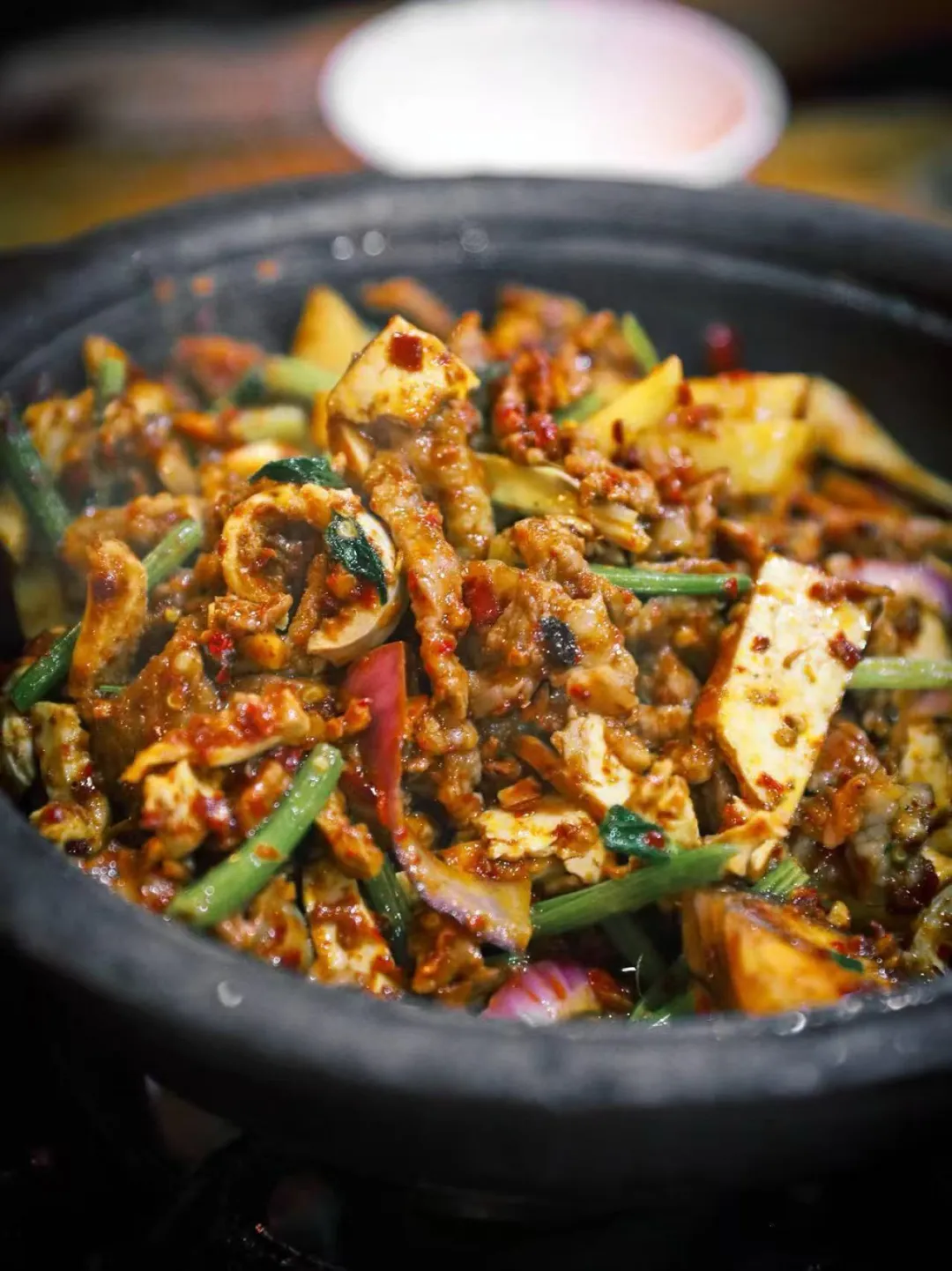 在石板街周边餐馆就餐,点一份都匀虾酸牛肉或特色豆米火锅,感受黔南地道风味,吃饱喝足继续出发。