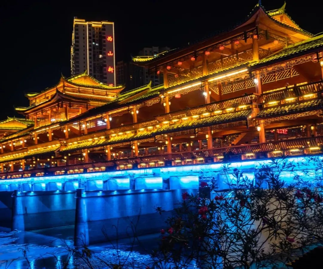 夜游西山大桥,看灯火璀璨映照剑江,晚风拂面惬意十足;再回到石板街,夜色中的古街更具韵味,灯光勾勒古建轮廓,沉浸式感受匀城夜生活,结束一日完美旅程。
