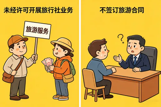 通过社交平台、短视频、朋友圈、微信群等方式,以明显低于市场价格销售旅游产品,或以“定制师”“向导”“旅游顾问”“俱乐部”等名义招徕游客,在未取得相关经营资质的情况下开展团队游业务,此类渠道属于违规经营,易引发维权纠纷,甚至出现旅游诈骗。