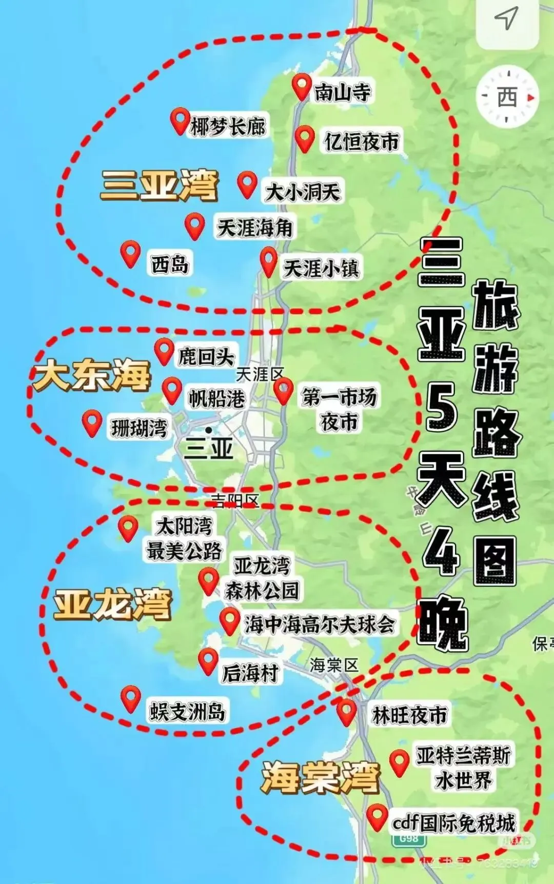 在三亚租了车之后,出行会方便很多,尤其是带着老人和小孩。考虑到小孩和同行的两位老人都是第一次坐飞机,前两晚我们在距离凤凰机场近一点的地方住下,早一点可以休息休息。 【三亚简约版攻略图】