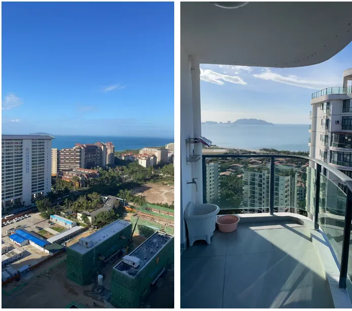 凤凰机场在三亚湾,大概有十几公里左右吧,我们下了飞机之后就看到大街小巷都是高高的椰子树。我在靠近机场的三亚湾这边订的两晚是高层民宿,位置很靠近海边,在房间的阳台上可以直接看到大海。有三个房间,刚好满足我基本要求,价格当时大概是380一晚。
