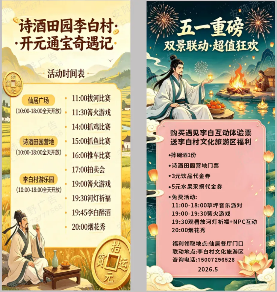 这个五一,不妨慢下来,在李白村住进诗里、游于画中,过一个有滋有味的“唐朝劳动节”!