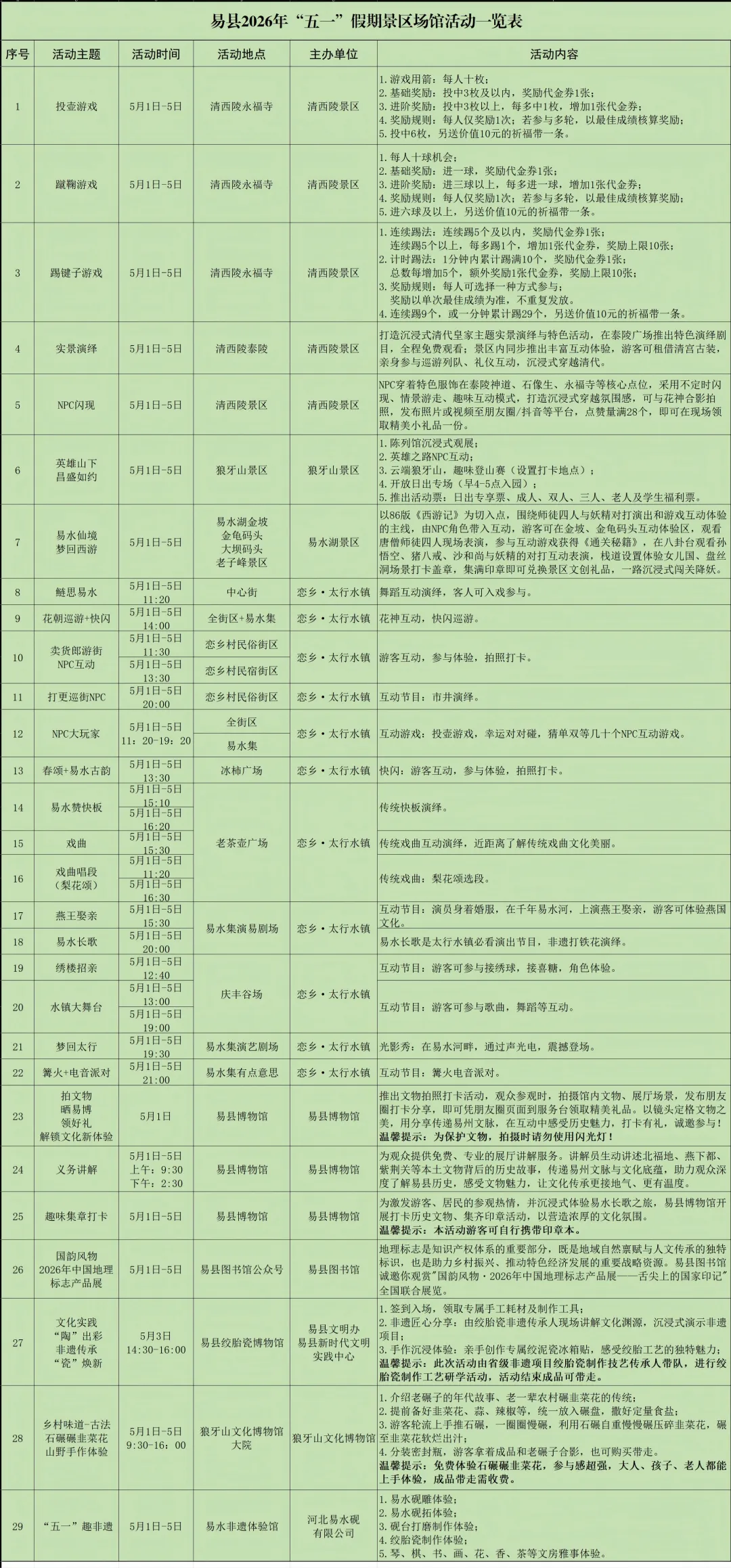 这个“五一”,易县已将满满诚意与精彩活动备好,山水有情,活动有趣,只等您来。愿您乘兴而来,