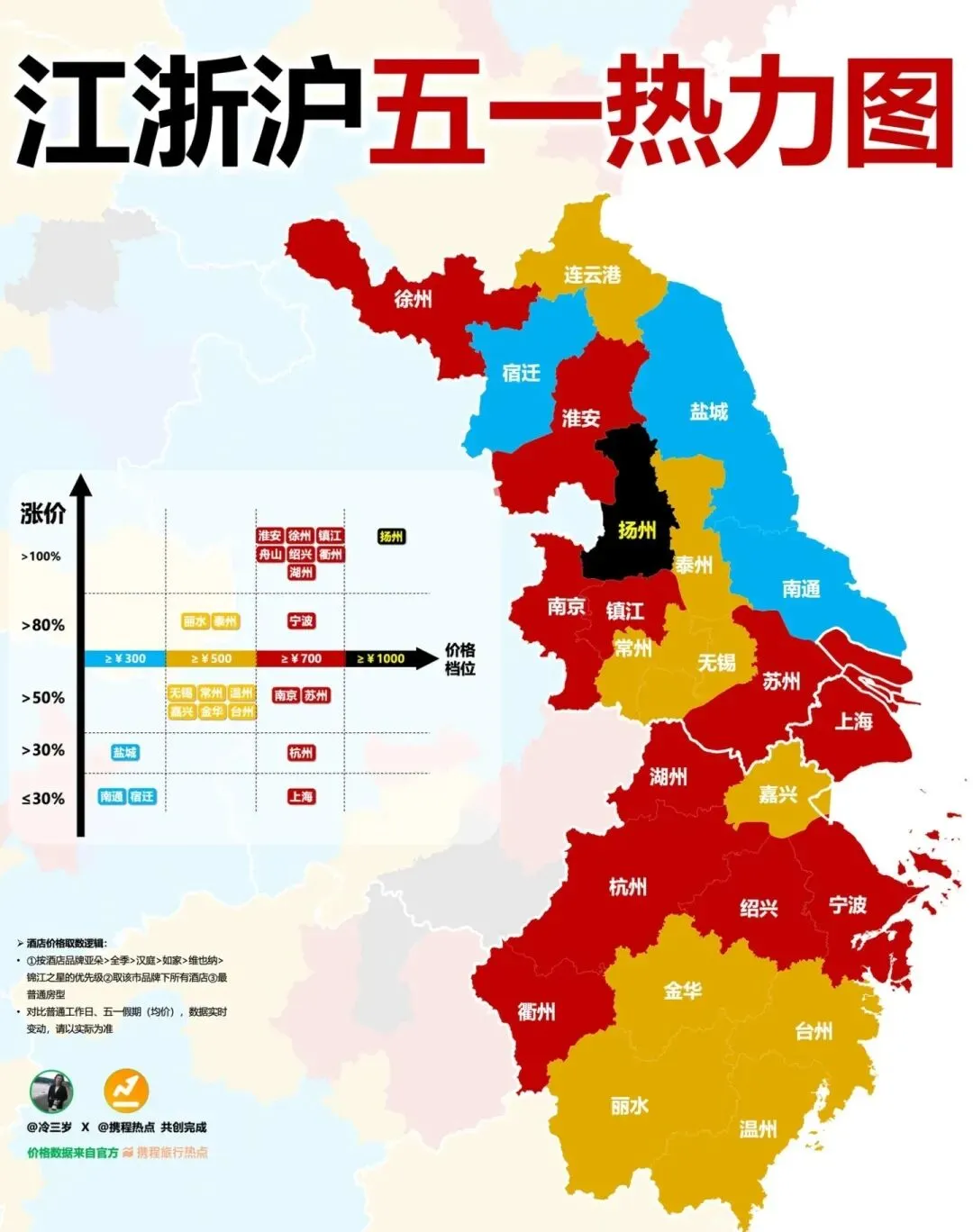 1、江浙沪几乎全域爆火,扬州尤为突出;
