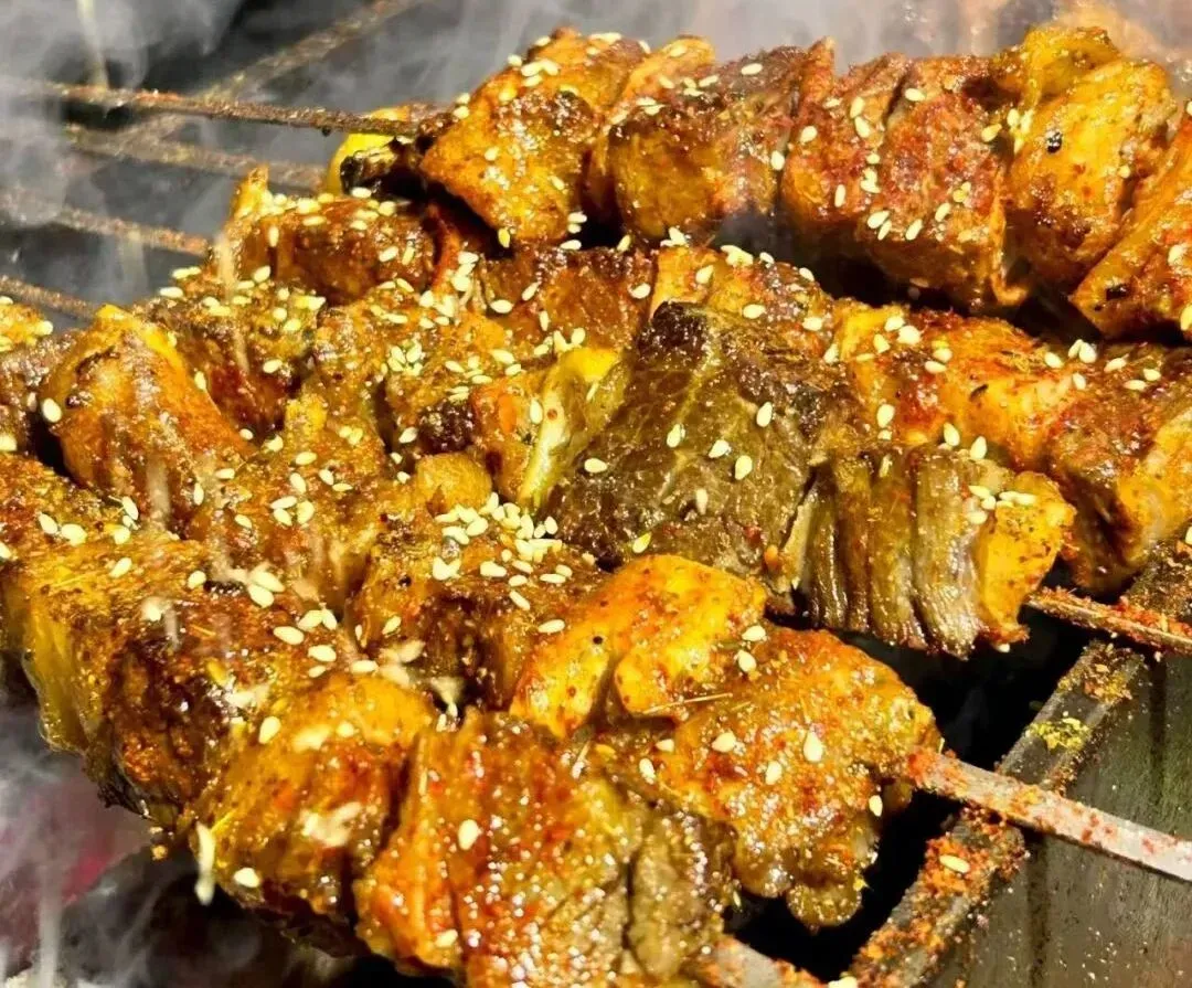 烧烤(推荐:吕老二烧烤城、你瞅啥东北烧烤)—— 炭火现烤,撒上孜然辣面,香飘半条街。