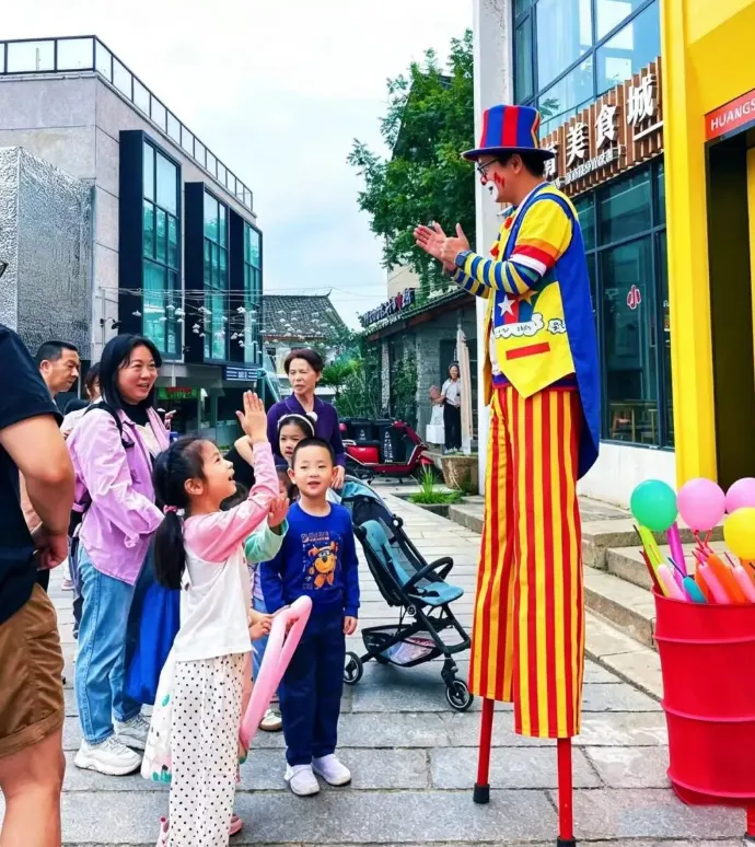 5月1日-3日(下雨顺延),未苏湾将上演沉浸式互动体验:高跷小丑迎宾巡游、美猴王NPC剧情互动、小丑亲子游戏、美猴王巡游拍照……欢乐满园。
