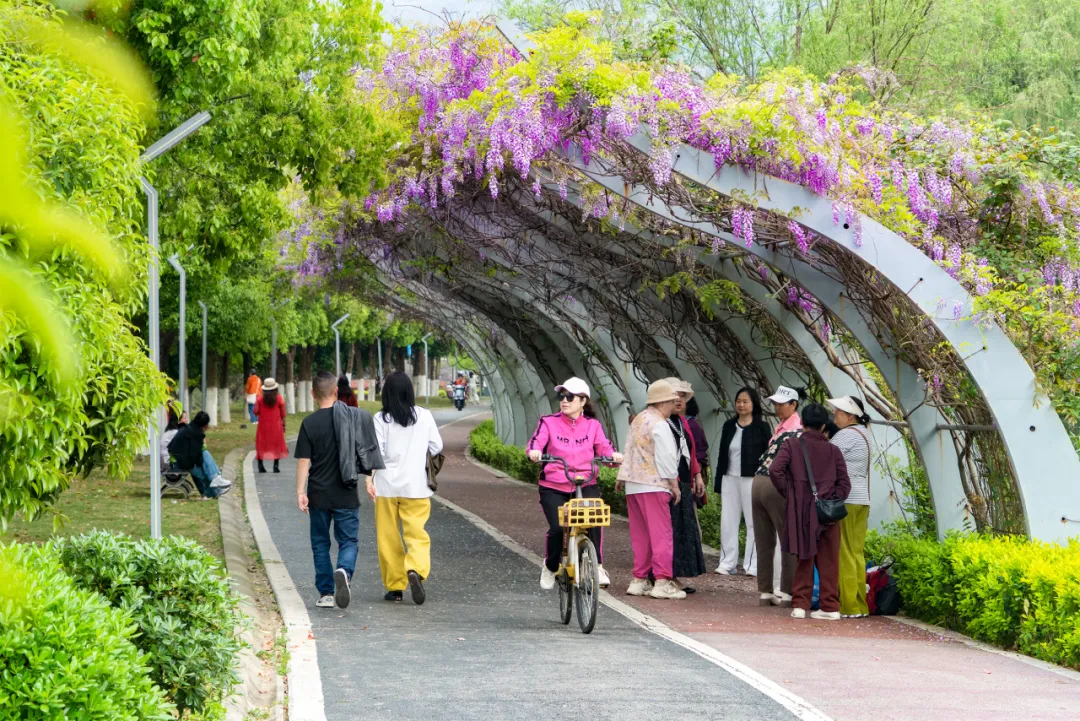 紫藤花下健步走