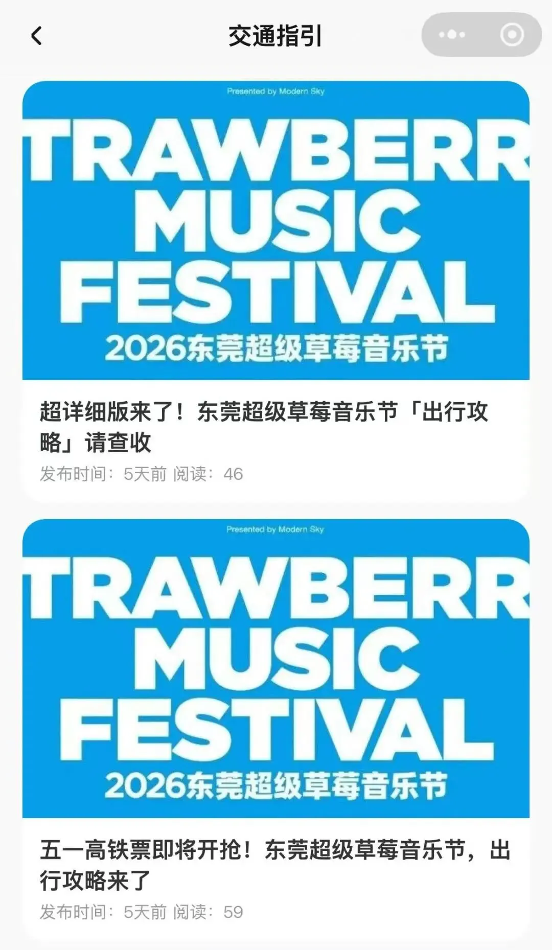 针对草莓音乐节,小程序设有 「音乐节交通指引」 专项模块。