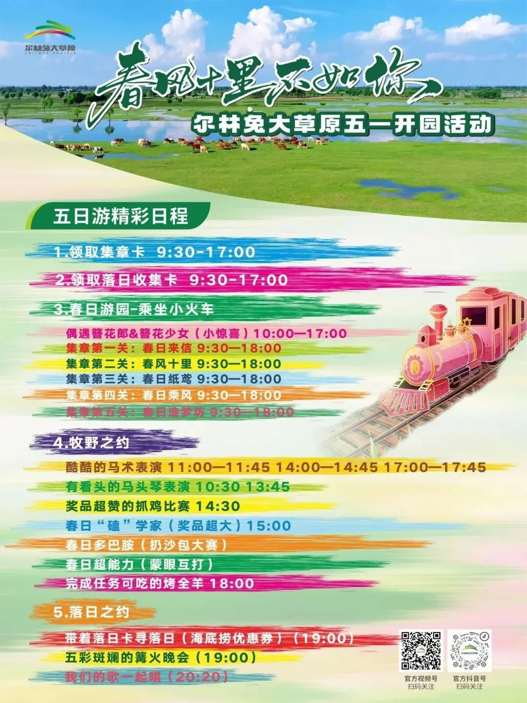 ✅马术表演 ✅捉鸡比赛 ✅扔沙包大赛 ✅春日游园 ✅篝火晚会……