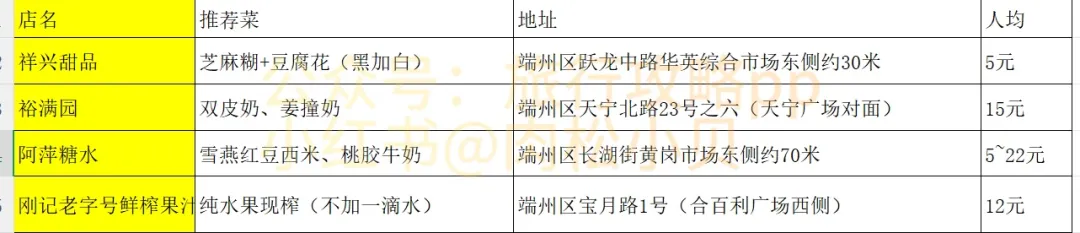 以下按 正餐 / 小吃 / 饮品·糖水 分类,每家附详细地址。(已拉表格)
