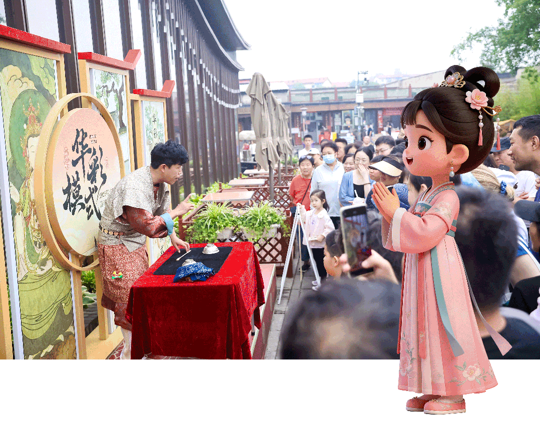 午间寻趣,邂逅非遗快闪惊喜,古彩戏法变幻莫测;变脸技艺惊艳全场,近距离感受民俗演绎的热闹意趣,沉浸式解锁别样风情。