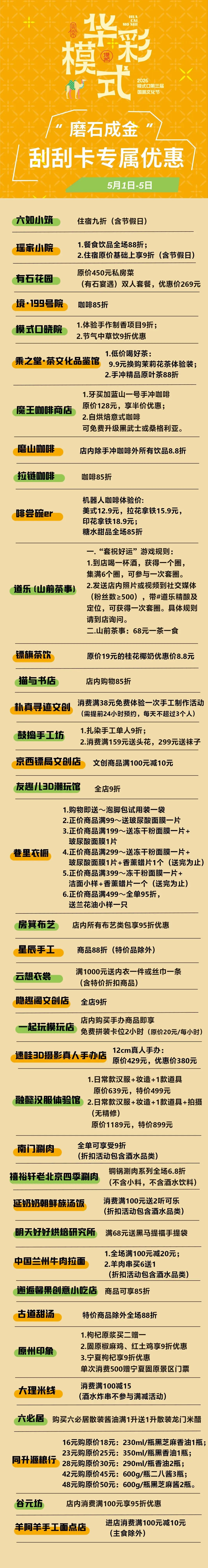 活动地点:古道斯存、爱心广场、乘之堂侧、承恩寺门侧、模式口公园