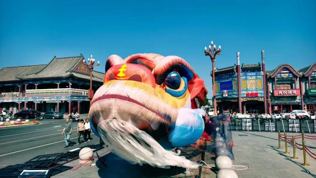 演出舞台设置在鼓楼广场升旗台南侧,鳌鱼内部注入氦气实现空中悬浮,由技术人员地面绳索牵引操控,灵活展现表演姿态,带来独特视觉享受。