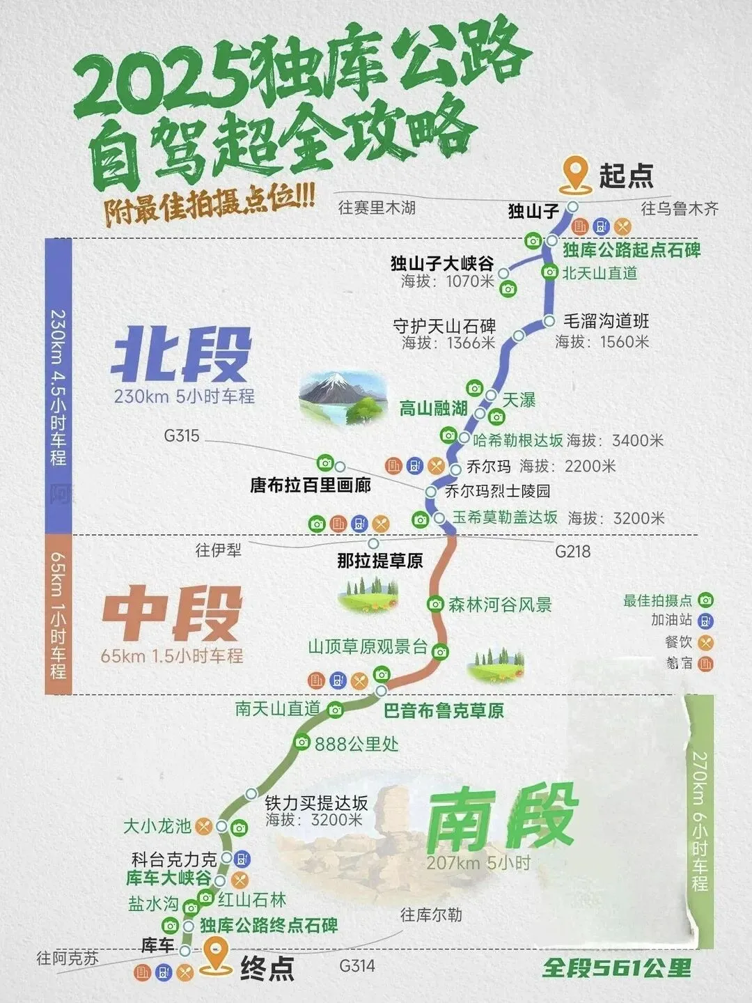 纵贯天山山脉,561公里一日穿越四季,雪山、草原、峡谷、荒漠无缝切换,仅6月中旬-9月中旬开放,是自驾爱好者的朝圣之路。