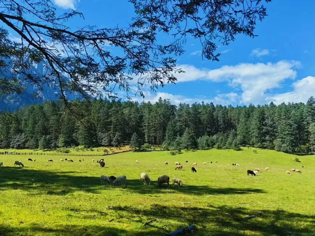 玉龙雪山:五月的玉龙雪山,山顶白雪皑皑,前几天刚下过雪,冰川在阳光下闪耀。半山腰的云杉坪草甸新绿铺展,仿佛闯入北欧秘境;山脚的蓝月谷湖水湛蓝如宝石,倒映雪山,随手一拍都是壁纸。