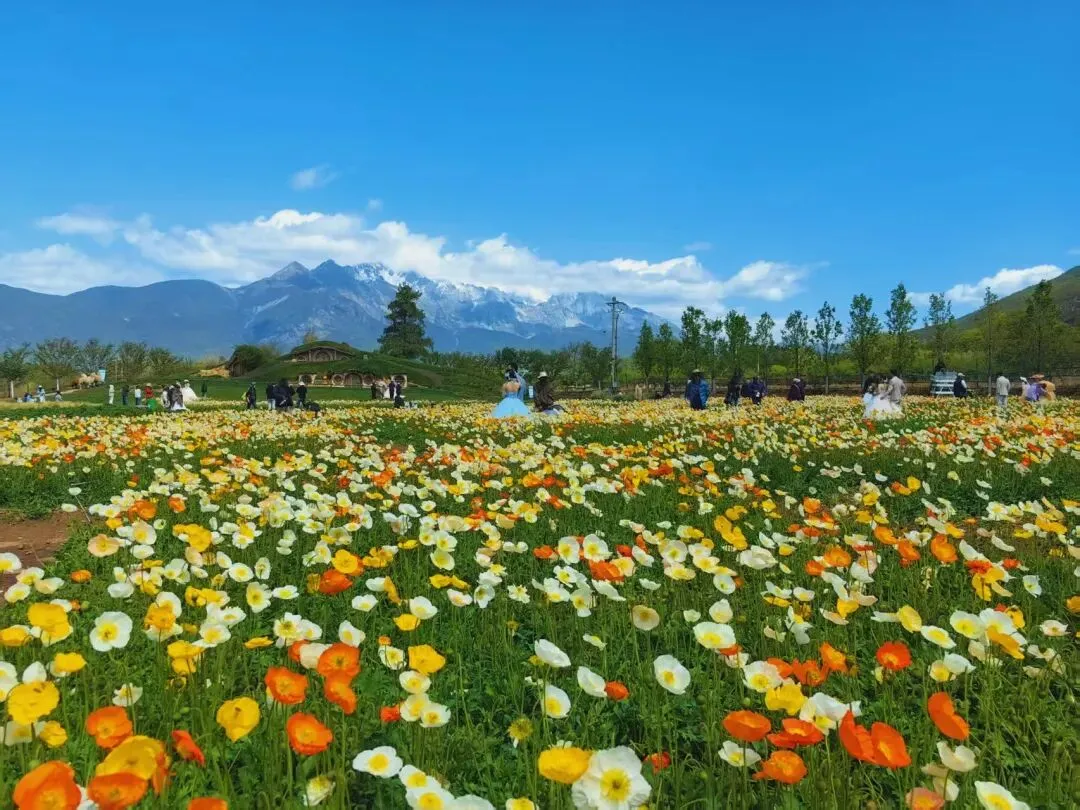 丽江听花谷景区(百花园):位于玉龙县白沙镇,300余亩花海迎来最美时节,虞美人、杜鹃、月季、蔷薇等竞相绽放,霍比特童话小屋、人工湖泊点缀其间,人花相映,美不胜收,是赏花踏青、拍照打卡的绝佳去处。