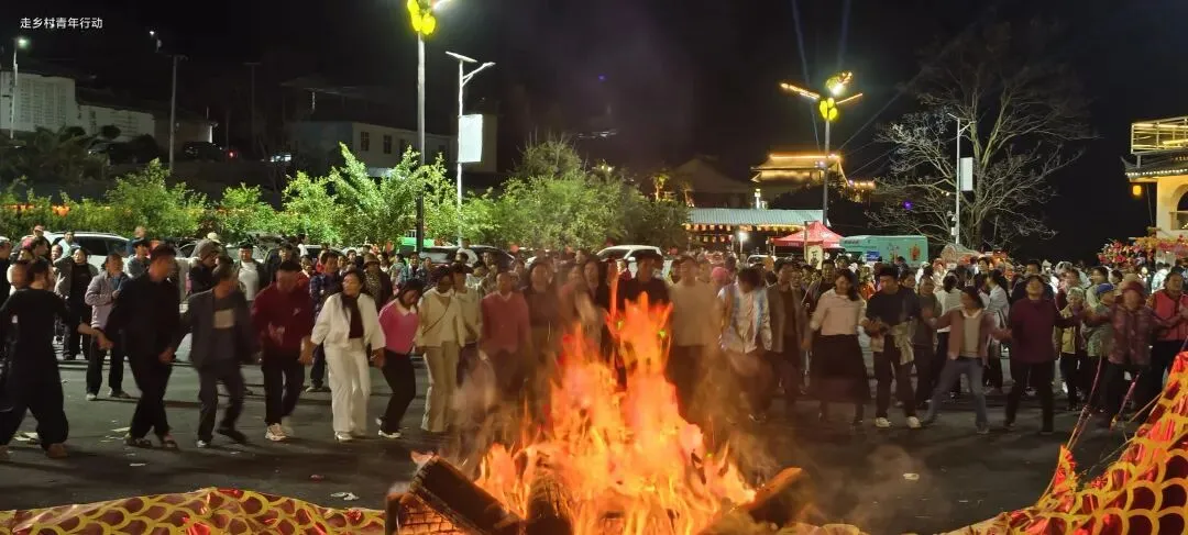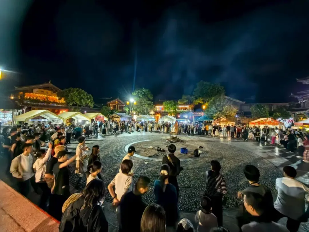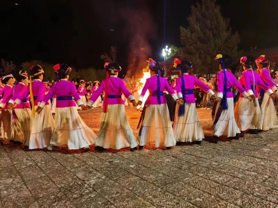 束河古镇:每晚20:00四方听音广场篝火打跳,手拉手跳起欢快的舞步。