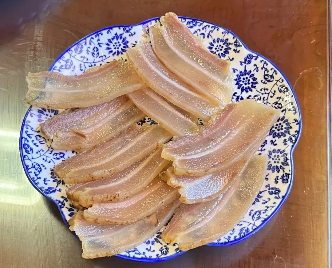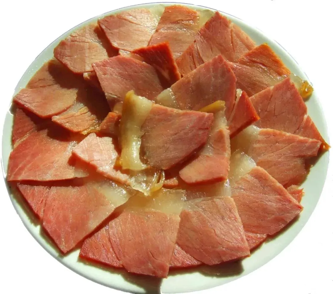 永胜三川火腿:永胜美食金字名片,选用本地猪后腿,经盐渍、风干、陈化等多道传统工序精制而成。色泽红润油亮,咸香醇厚、入口绵软,可直接生食,也可搭配野生菌爆炒,享有“软性火腿”美誉。