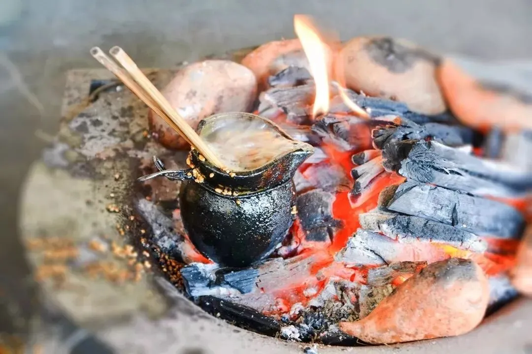 火烧粑粑(三吹三打):丽江民间特色主食,将发酵面团埋入炭火灰中慢烤而成,外皮焦香酥脆,内里松软麦香浓郁,是本地人日常早餐的经典碳水美味。