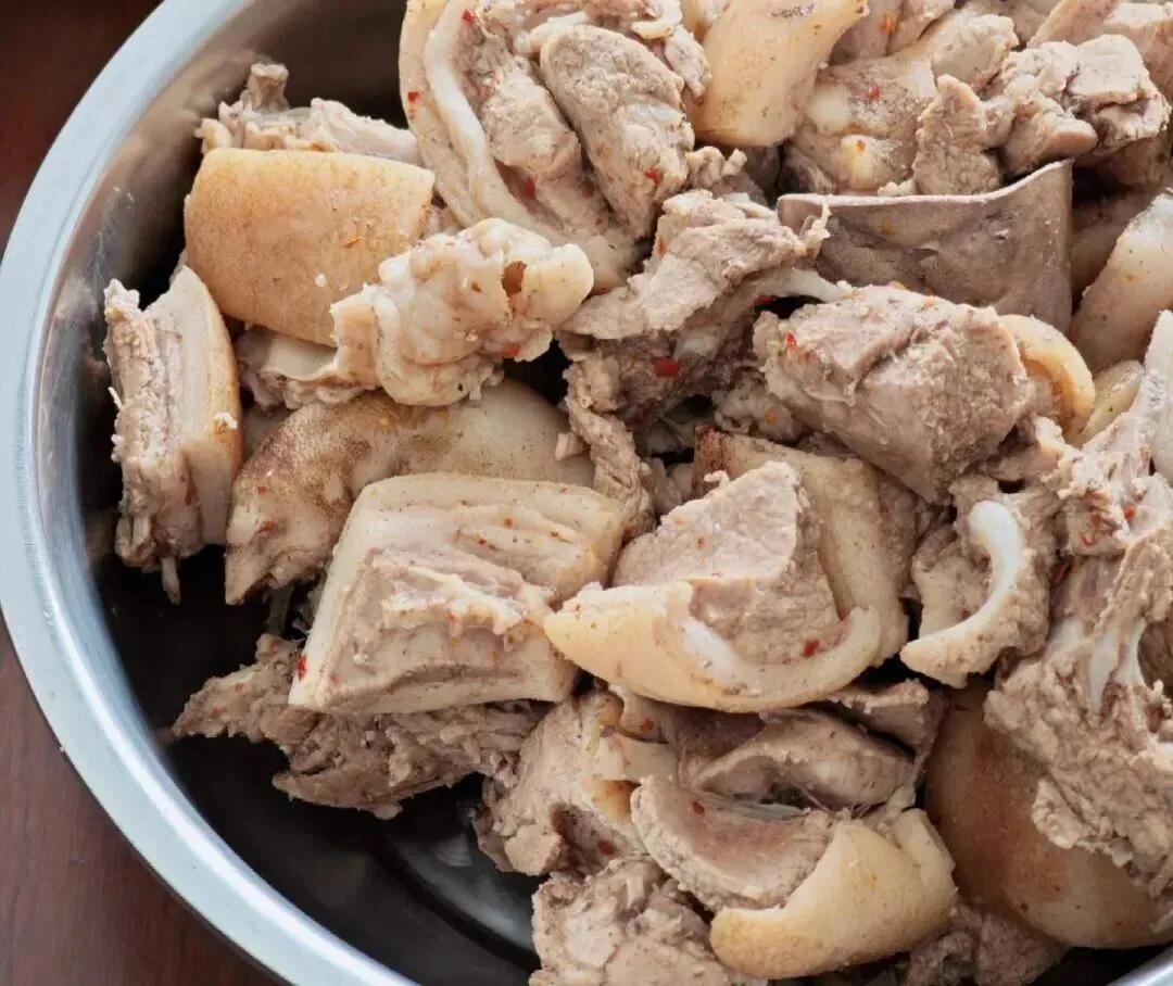 宁蒗坨坨肉:宁蒗彝族美食绝对C位,选用三四月龄小猪崽,连皮带肉砍成拳头大小,清水煮至八成熟,撒盐简单调味即可食用,肉质鲜香原汁原味,粗犷又地道。