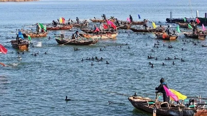 渔家民俗表演《鱼鹰捕鱼》