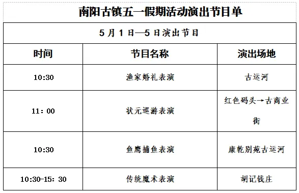 下午:体验摇橹船,游览镇内水道,参观非遗工坊,购买南阳特产,可前往码头附近区域休闲。