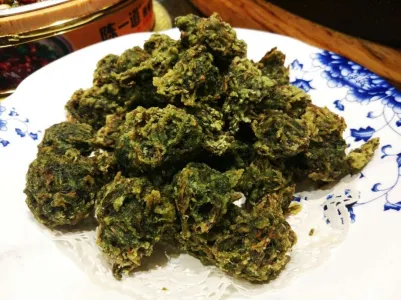 苲草丸子是一种油炸食品,采用微山湖可食用水草制作,用面团拌上剁碎的苲草作料,然后将油烧开,将拌好的丸子放入油锅里炸一段时间,用笊篱捞出放在干燥的地方待冷却后即可食用,香气浓浓,酥脆爽口。