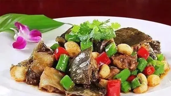 甲鱼炒鸡是微山县南阳古镇的特色美食,风味独特。菜品以当地优质甲鱼和土鸡为主料,肉质鲜嫩,汤汁浓郁,香气扑鼻。制作时,先将甲鱼和土鸡切块,焯水去腥;再热油爆香葱姜蒜,加入豆瓣酱炒出红油;随后放入鸡块和甲鱼块翻炒,加入料酒、生抽、老抽调味;加入适量清水,小火慢炖至肉质酥烂,最后大火收汁即可。这道菜集甲鱼的鲜美与鸡肉的香醇于一体,口感丰富,是南阳古镇不可错过的美味佳肴。