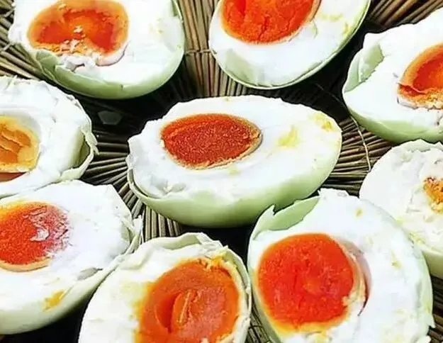 微山湖咸鸭蛋,该产品采用微山湖麻鸭所产鸭蛋,该鸭种为中国四大名鸭之一,以鱼虾为食,蛋黄天然红心且油脂丰富。使用荷叶、香料等辅料腌制,常见黄沙腌制法和饱和盐水腌制法,腌制周期为20-30天。成品蛋清雪白、蛋黄油润,呈红色,蛋黄起沙冒油,有沙拉的口感。是中国国家地理标志产品。