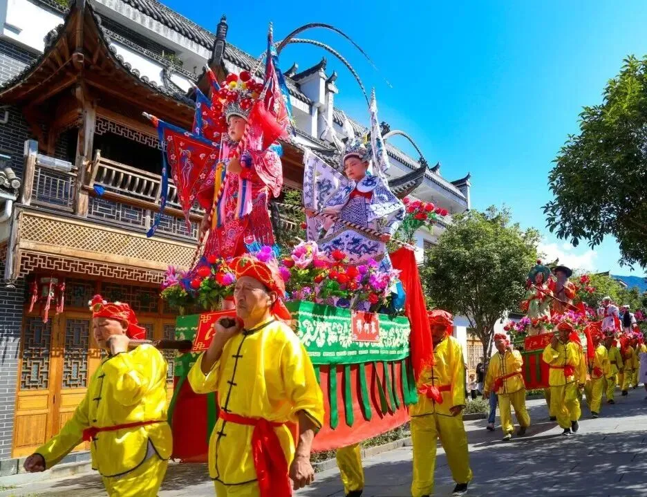 热闹纷呈的豆腐架巡演即将重磅登场!身着精致戏服的孩童立于彩绘架台之上,