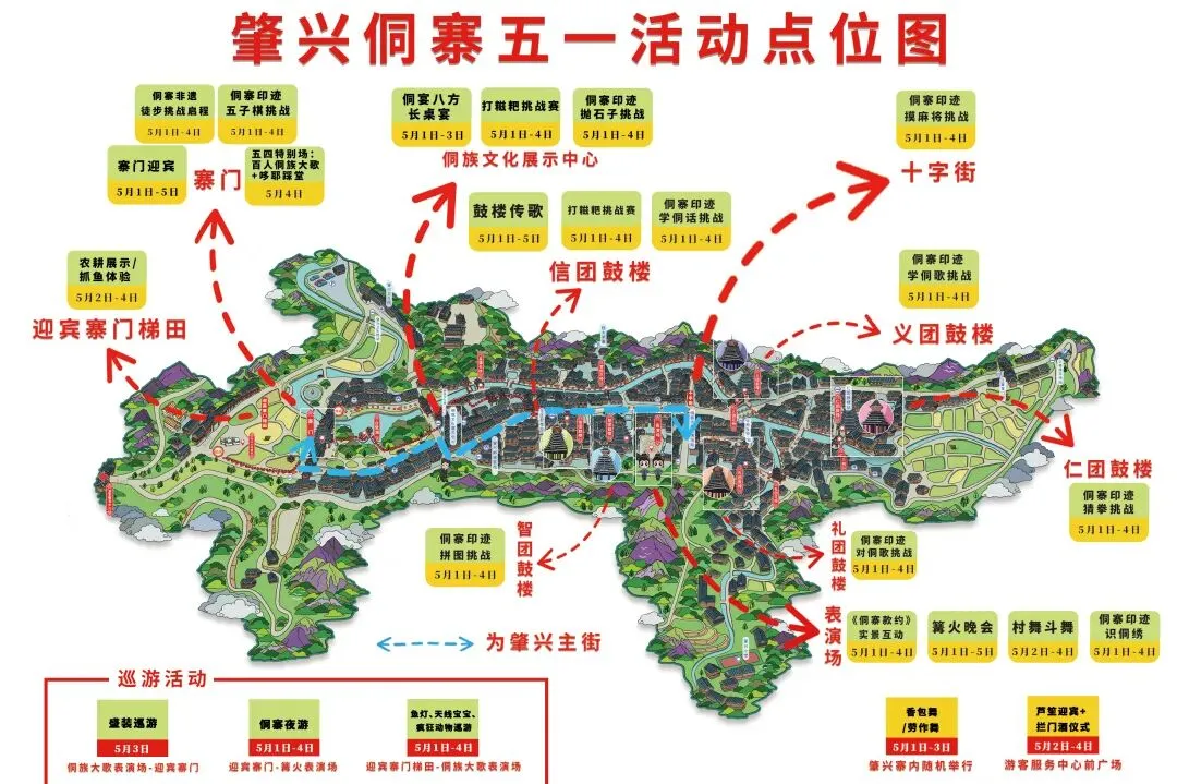 肇兴侗寨→堂安生态博物馆→黄岗侗寨→黎平会议会址→天生桥区→从江岜沙苗寨→小黄侗寨