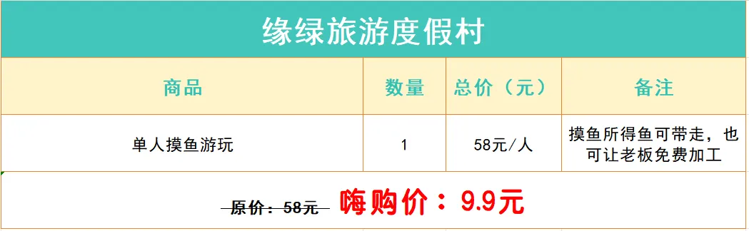 *注:摸上来的鱼可带走,也可免费加工食用!