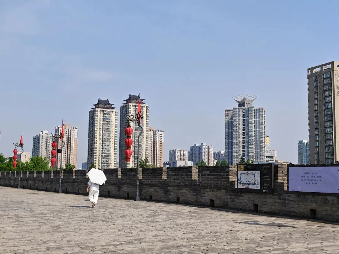 从那个门开始沿着城墙根下的环城公园散步,就能免费欣赏到不输南门的雄伟城楼和护城河风光,非常漂亮👇