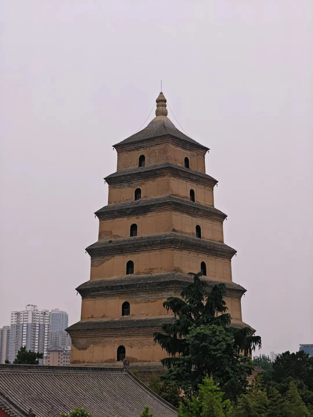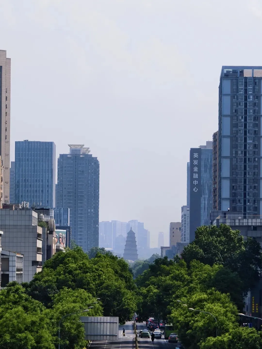 骑车去大悦城的4楼“薇酌饮”餐厅旁边的观景平台拍了一张大雁塔全景