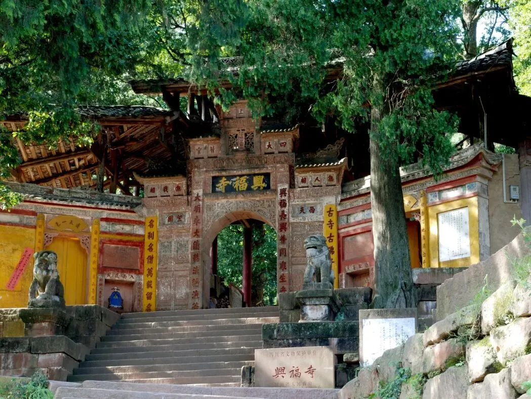 路线亮点:融合古镇人文与山林禅意,适合喜好清静的游客。兴福寺千年古树群气势磅礴,步道沿途绿意盎然。