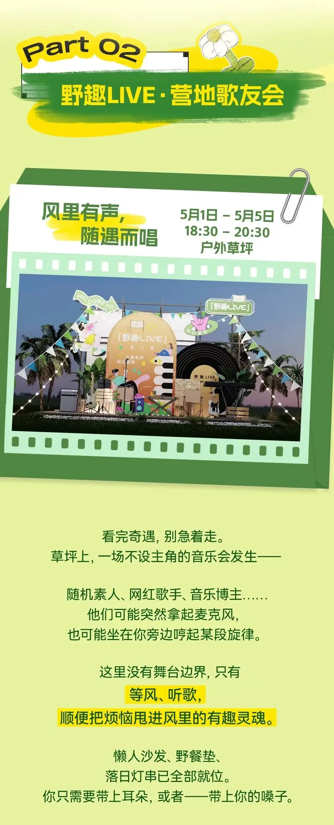 营地歌会、免费冰淇淋