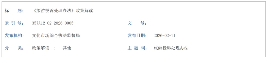 《旅游投诉处理办法》及政策解读