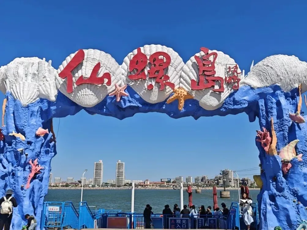 仙螺岛全程1038米,乘坐跨海缆车凌空俯瞰渤海斑斓海景!随手一拍都是氛围感大片!