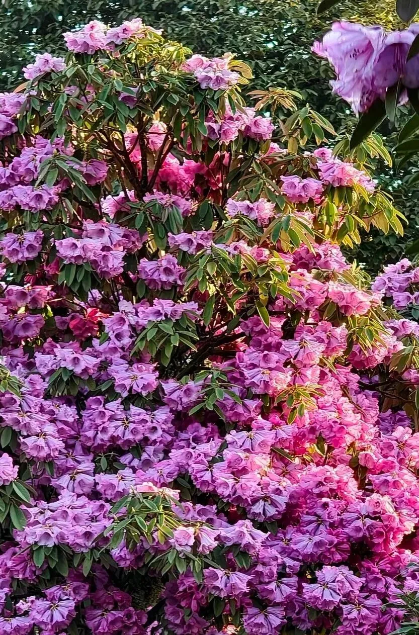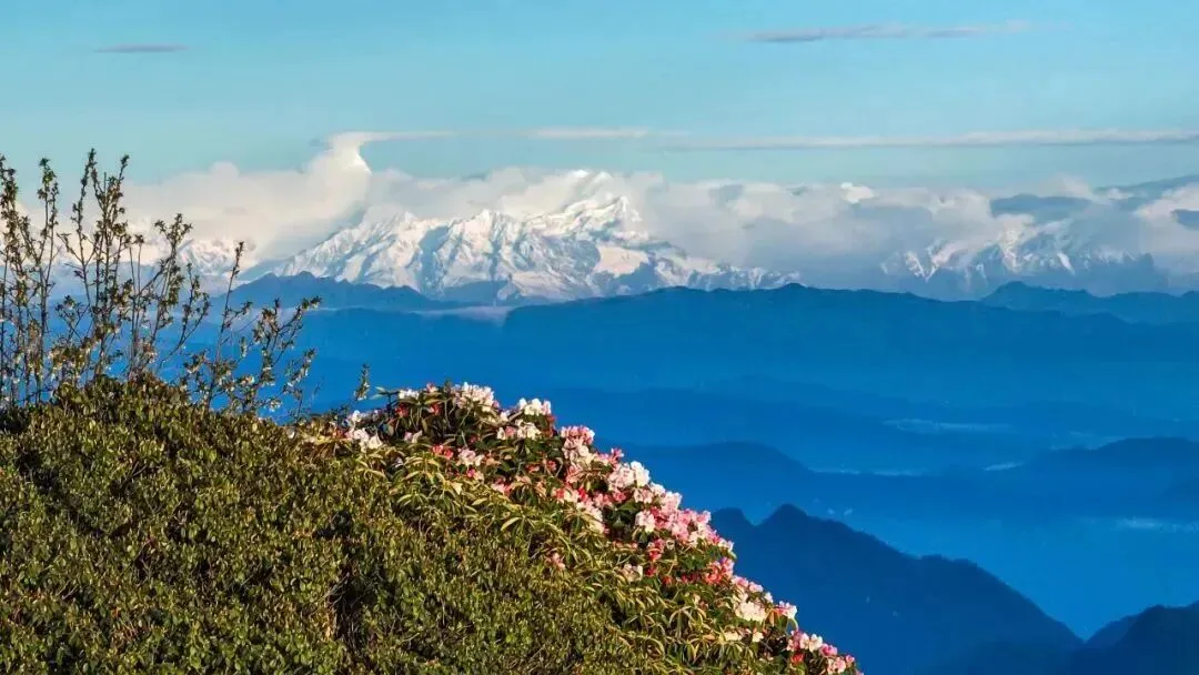这里就是个花的世界!从4月一直到6月,从华严顶到金顶,几十个品种的高山杜鹃一路接力盛开,紫色、粉色、白色的花海和古寺、云海同框,真的绝绝子!
