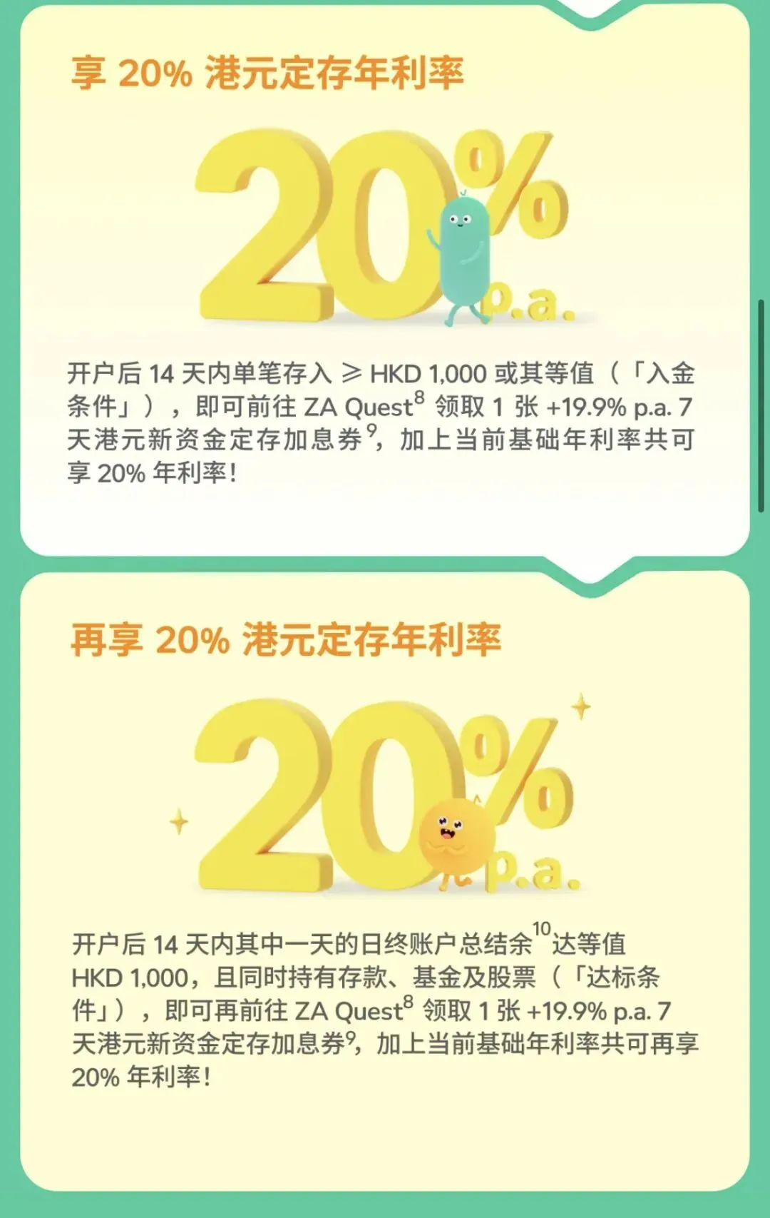 去众安银行Za Bank,享价值 HKD 2,026 奖赏以及 20% 港元定存年利率! 3️⃣ 个真心推荐 ZA Bank 的原因 💛 全程线上,无需前往分行 💛 无最低存款要求,零账户管理费 💛 24x7 银行服务 立即用专属邀请码 [YF3D33] ,或者点击👇 https://l.za.group/p65FT 或者复制以下链接👇,粘贴至手机浏览器地址栏后点击: https://mobile.za.group/act/MGMShare/MGMShare_2025_Jan/?language=zh&inviteCode=YF3D33&name=Mr.** 祝大家五一快乐! 各种港卡有疑问,欢迎加群交流~