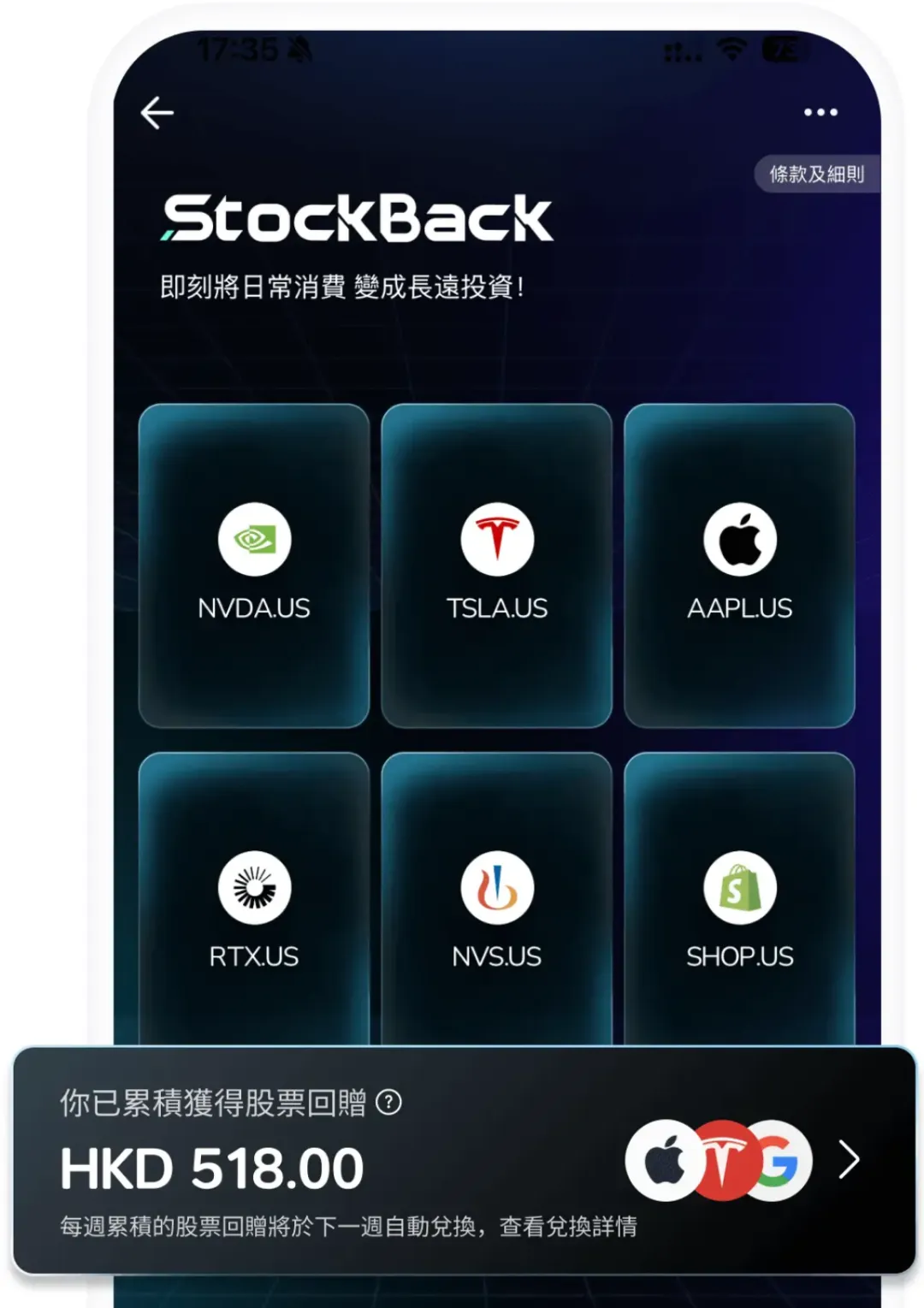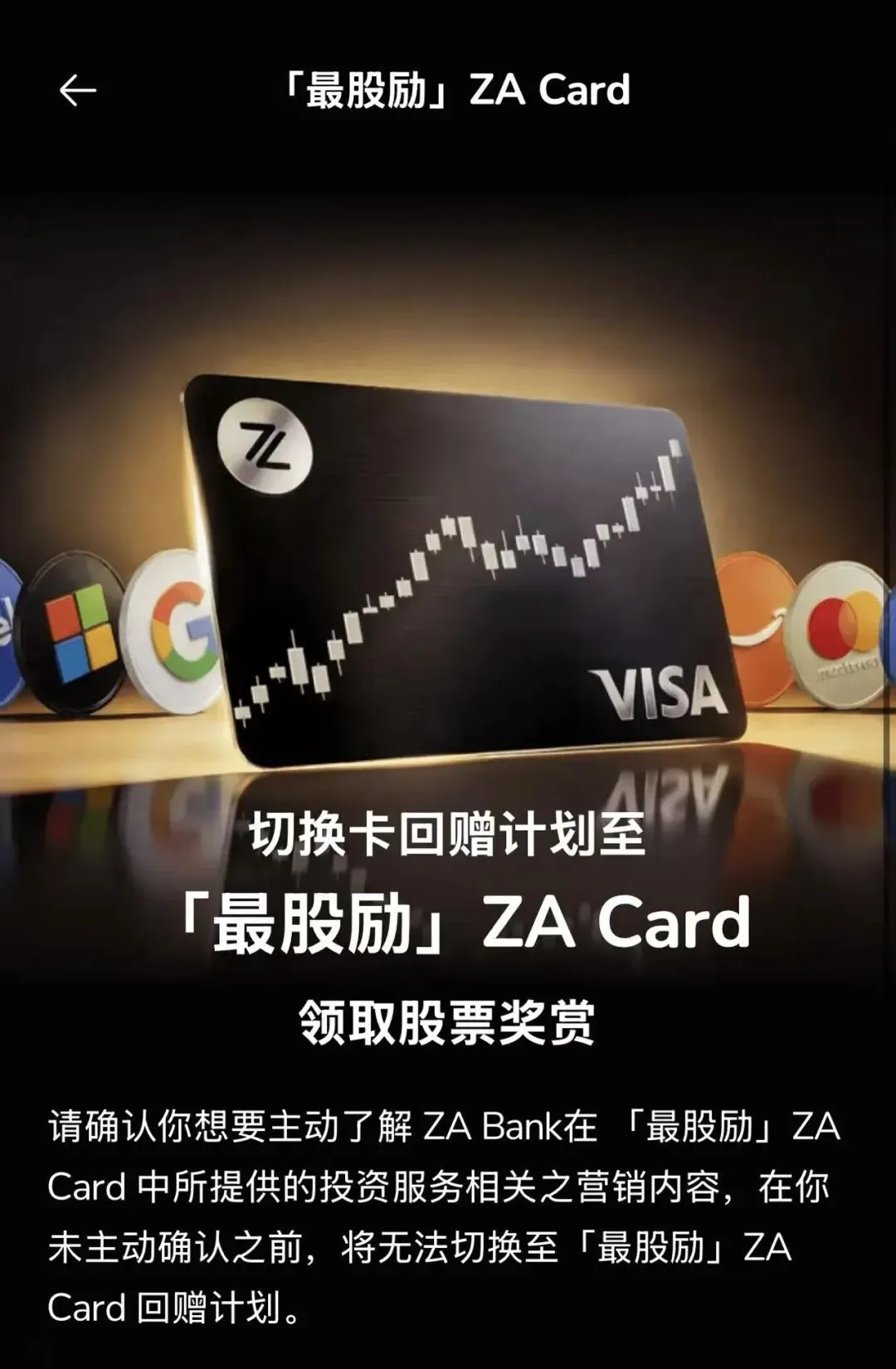 当下香港互联网券商普遍不好开的情况下,众安ZA Bank目前也能港股打新,还有 StockBack x ZA Card 全港首創以股票作為消費回贈的回贈計劃,消费有美股碎股回赠,更能自定义喜欢的VISA卡号。