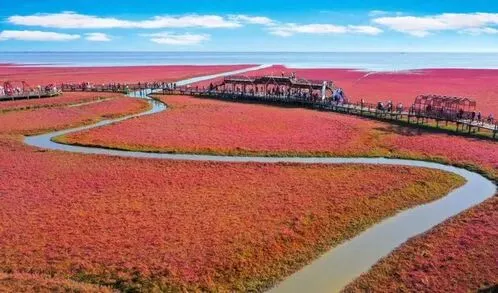 红海滩之所以出圈,并不是因为颜色为红色那么简单,而是因为它第一次让人们意识到东北的秋天除了山林、落叶之外还有湿地、滩涂以及候鸟和海河交汇处那种辽阔的感觉,这个东西特别珍贵,它并不是复制出来的,在别的地方想学也学不像。碱蓬草、辽河入海口、湿地生态与秋季旅游需求叠加在一起才有了盘锦的独特性。