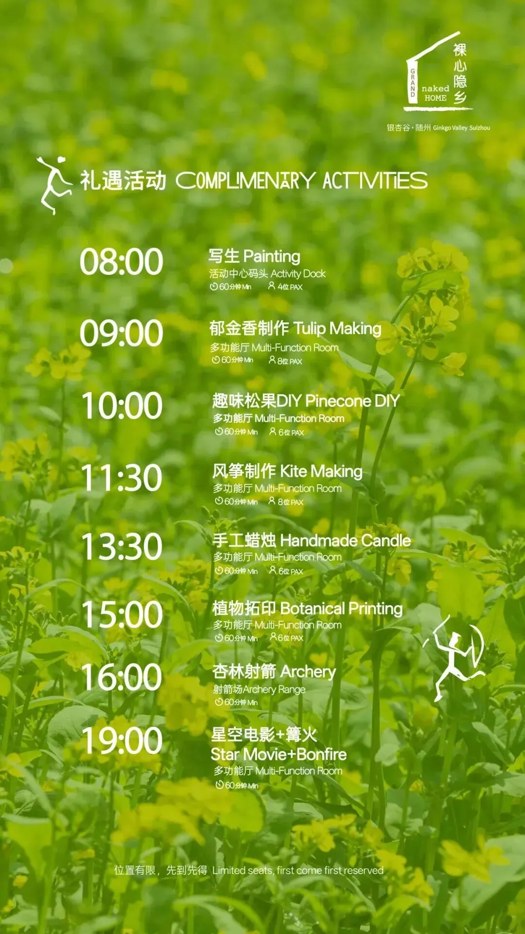 住店礼遇活动,沉浸式野奢时光,把五一假期交给自然!随州裸心隐乡已为你备好一整份「山野治愈计划」,从晨光到星夜,每一天都被绿意与趣味填满。
