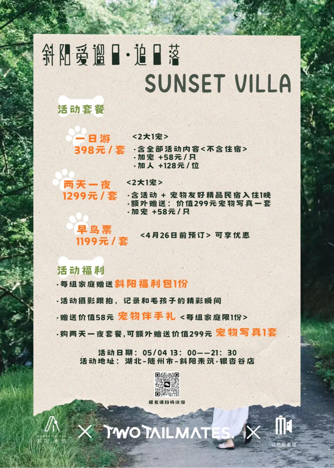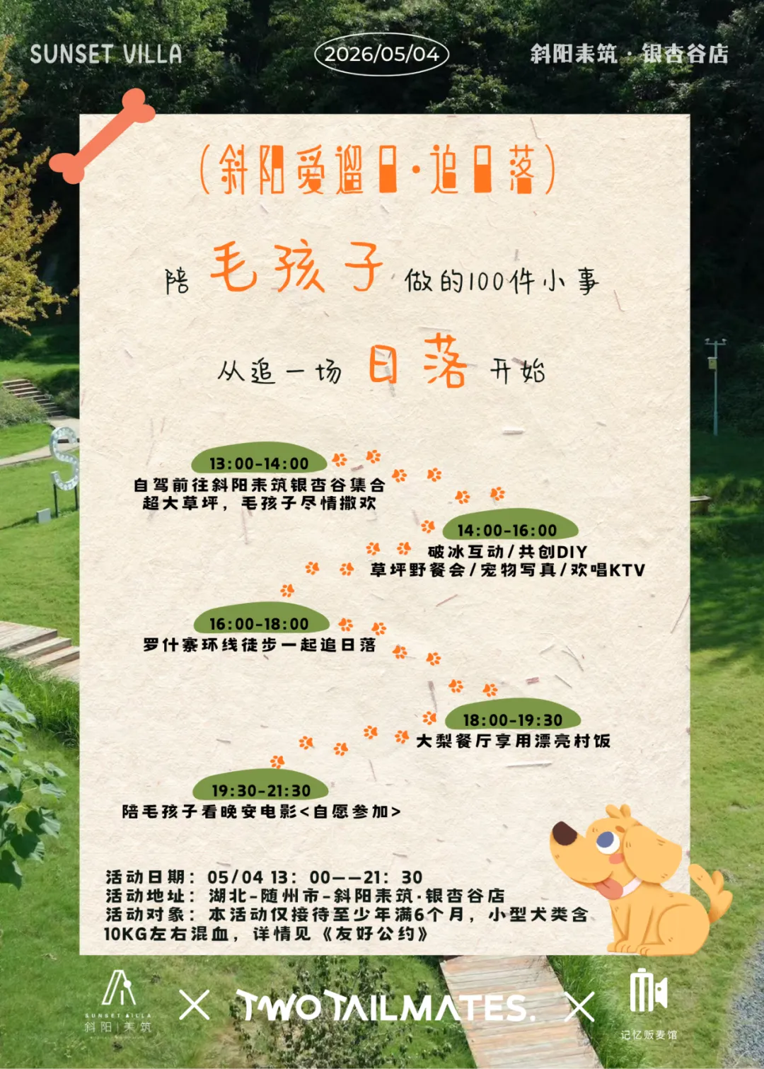 与毛孩子破冰互动、手作DIY、野餐小铺、黄昏徒步罗什寨看日落,摄影跟拍+价值58元宠物伴手礼+斜阳福利包,购两天一夜套餐还送299元宠物写真!