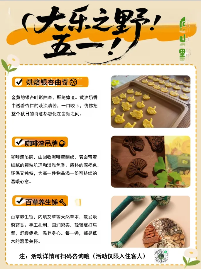 住在银杏谷的桃花源里,把山野的味道和手作的温度一起带回家(活动仅限入住客人)。