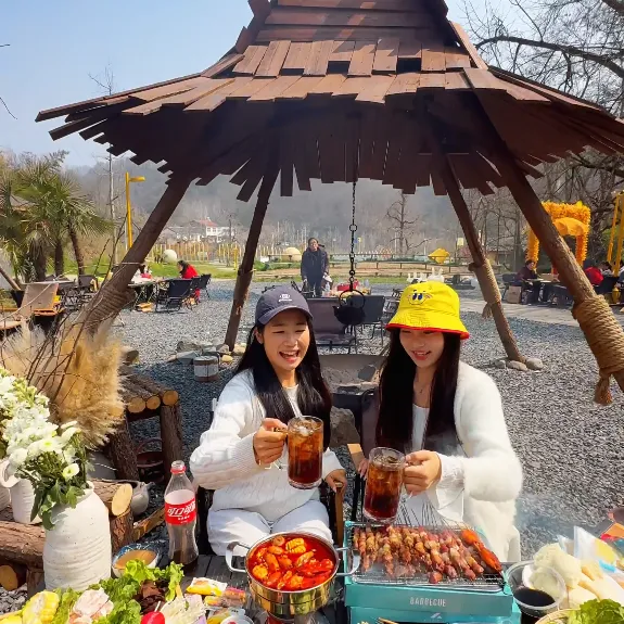 (露营烧烤·味蕾盛宴,开启自助露营烧烤环节,营地提供食材、烤具,游客自主烤制美食,搭配山野风景,边吃边聊,彻底激活味蕾;期间依旧可自由放风筝、漫步山谷,保持休闲氛围。)