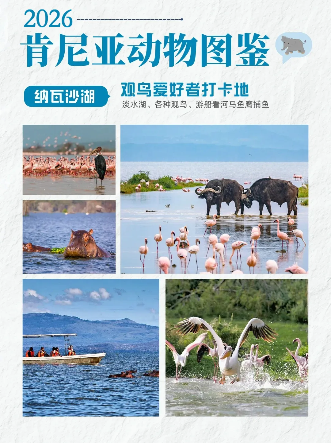 DAY4 | 安博塞利→纳瓦沙湖 | 湿地游猎 ,湖畔观鸟 前往纳瓦沙湖游猎,观赏河马、鱼鹰、各类水鸟,领略原生态湿地生态。 |